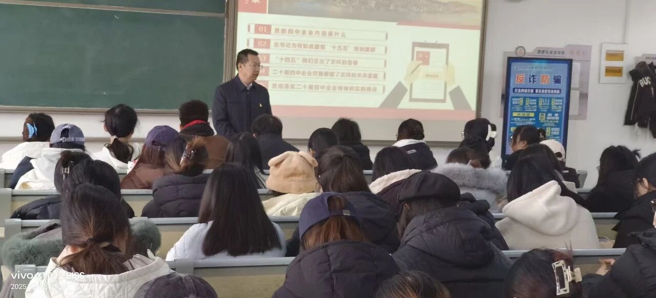 为深入学习贯彻党的二十届四中全会精神,引导毕业生树立正确的就业观、择业观,12月22日上午,地理与环境学院面向毕业生党员及学生代表举办了一场题为《锚定“十五五”蓝图,以青春之我绘就业新篇》的主题党课。党课旨在引导学生将个人理想融入国家发展大局,在新时代找准职业方向,走稳走实就业之路。