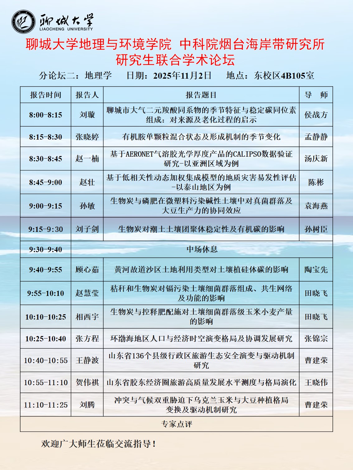 聊城大学地理与环境学院 中科院烟台海岸带研究所 研究生联合学术论坛(分论坛二)