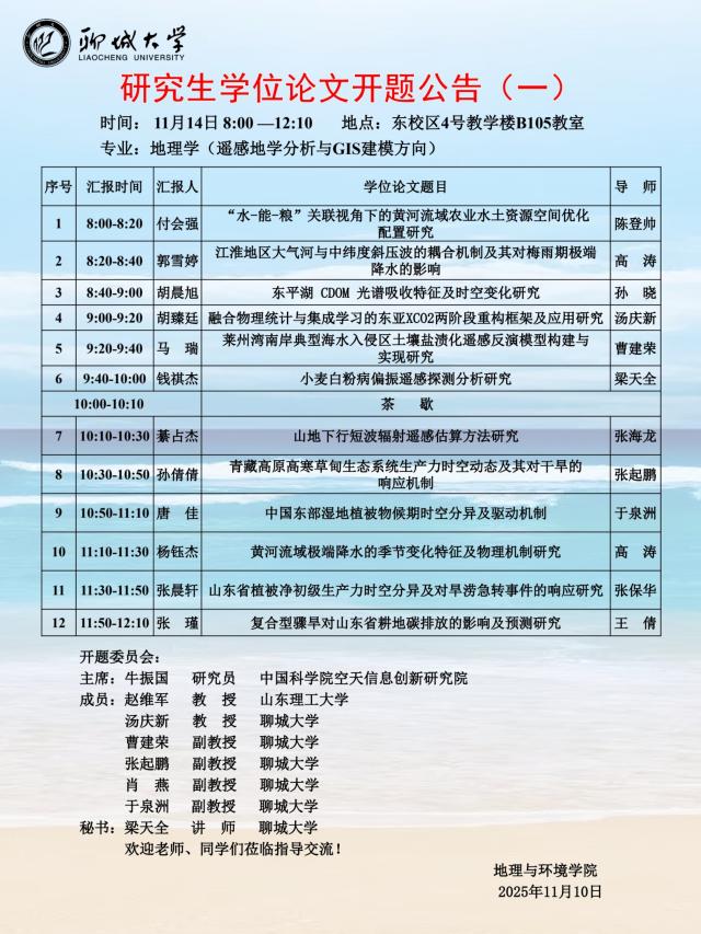 聊城大学地理与环境学院 研究生学位论文开题公告(一)