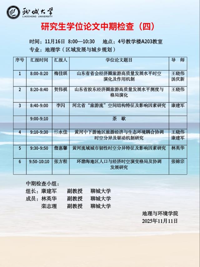 聊城大学地理与环境学院 研究生学位论文中期检查(三)
