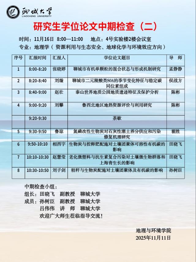 » 聊城大学地理与环境学院 研究生学位论文中期检查(二)
