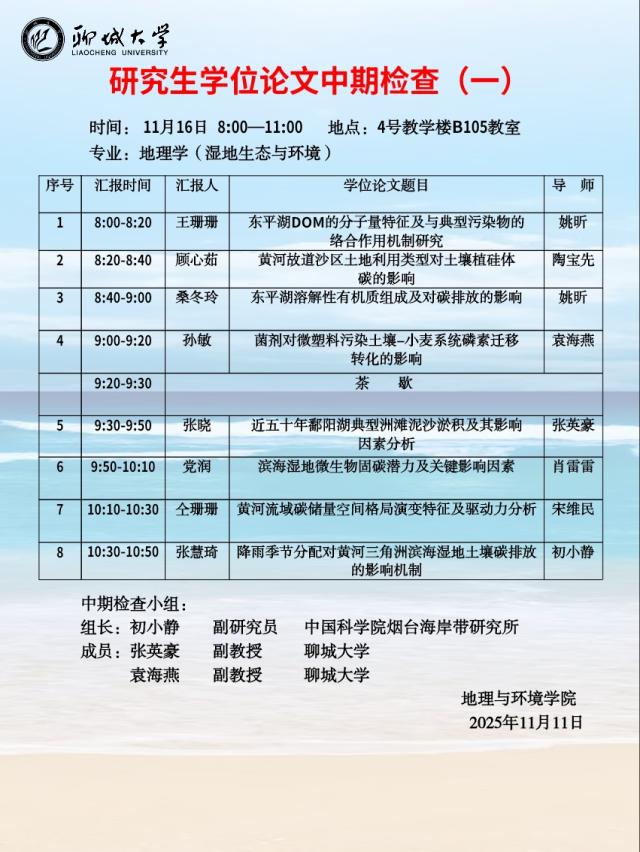 » 聊城大学地理与环境学院 研究生学位论文中期检查(一)
