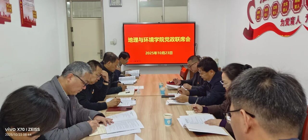 2025年10月23日上午,学校党委常委、副校长白金山到地理与环境学院列席指导学院党委会和党政联席会,认真听取会议发言、议题审议,并作了点评。他指出,这次党委会和党政联席会准备充分,严格落实议事规则,有效发挥了两个会议的议事决策作用。