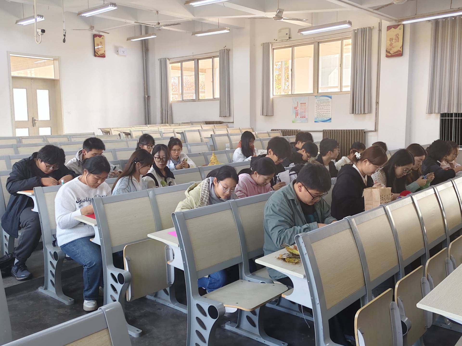 创作结束后,同学们依次向评委展示个人作品,详细阐述作品的灵感来源、创作过程,以及其中蕴含的生态意义与情感内涵。评委结合作品呈现效果及现场讲解情况进行综合打分与排名,卜宪林同学的作品因构思精巧、寓意深刻,荣获本次活动一等奖。活动落幕之际,参与同学纷纷表示,通过亲手创作落叶画,不仅切实体验了手工实践的乐趣,更深刻领悟了自然之美与环境保护的重要性。
