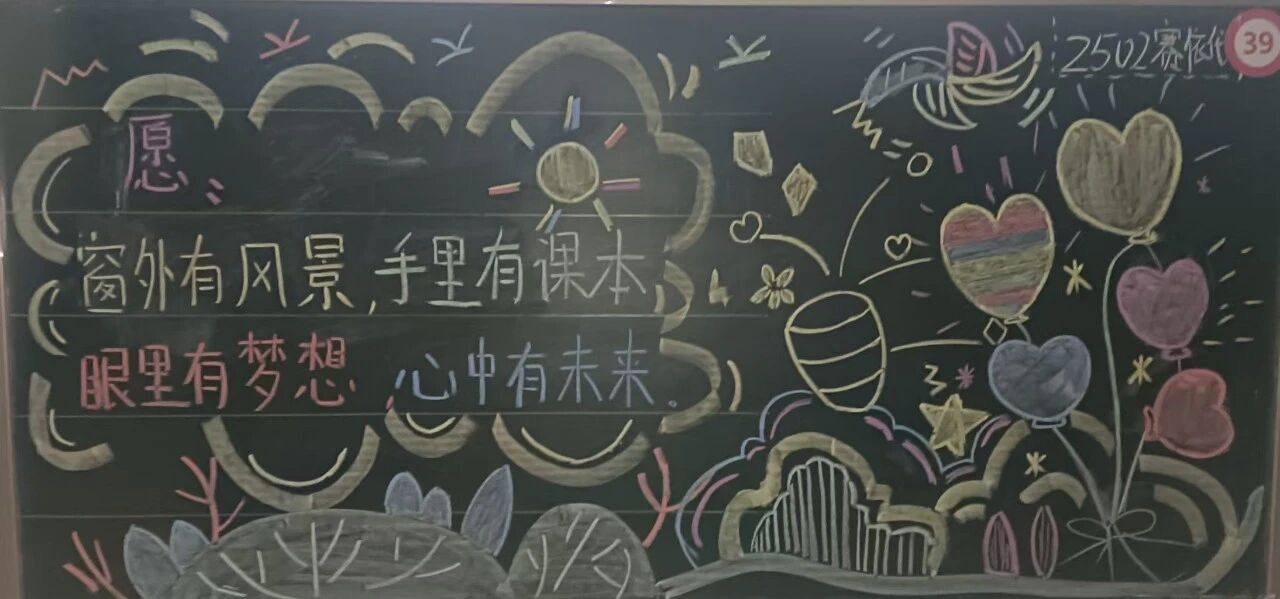 从构思到绘制,从色彩搭配到内容呈现,每一块黑板报都藏着满满的巧思与诚意。既体现了学生们的青春活力,又丰富了校园环境,让我们感受积极向上青春阳光的学习生活氛围,打造了多姿多彩的校园文化体验。让我们携手共进,共同为打造更加丰富多彩的校园文化贡献力量!