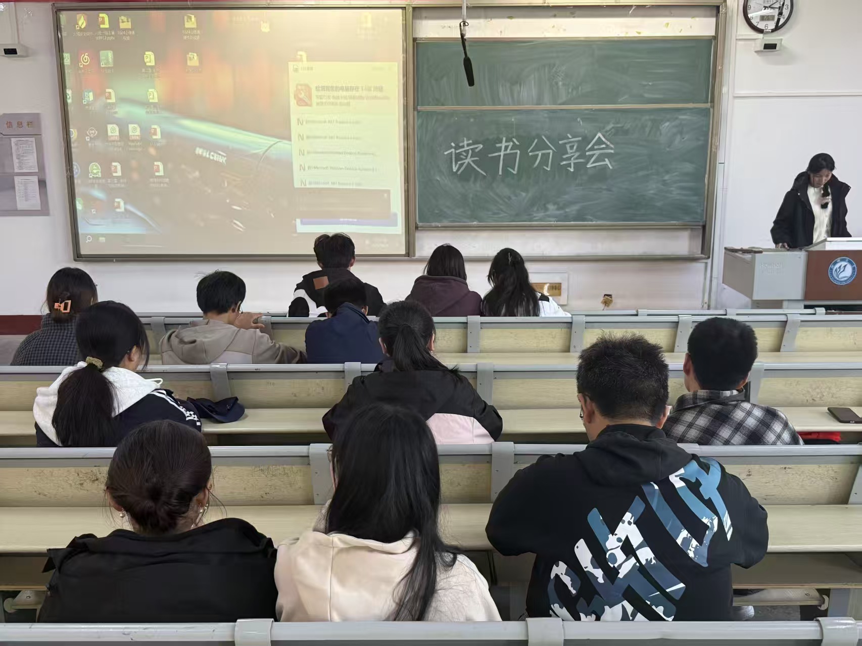 品书润心灵 交流促成长。本次读书分享会现场,同学们围绕“初遇经典、反复品读、感悟成长”三个维度,分享个人阅读经历与心得。大家将书籍内容与现实生活深度结合,同时主动抛出相关思考问题,引发全场激烈讨论——既加深了对书籍内涵的理解,也进一步提升了同学们的阅读兴趣。活动尾声,主持人对本次读书分享会进行总结。经综合评定,左天佑同学凭借独特的表达视角与丰富的叙述能力,荣获本次活动一等奖。